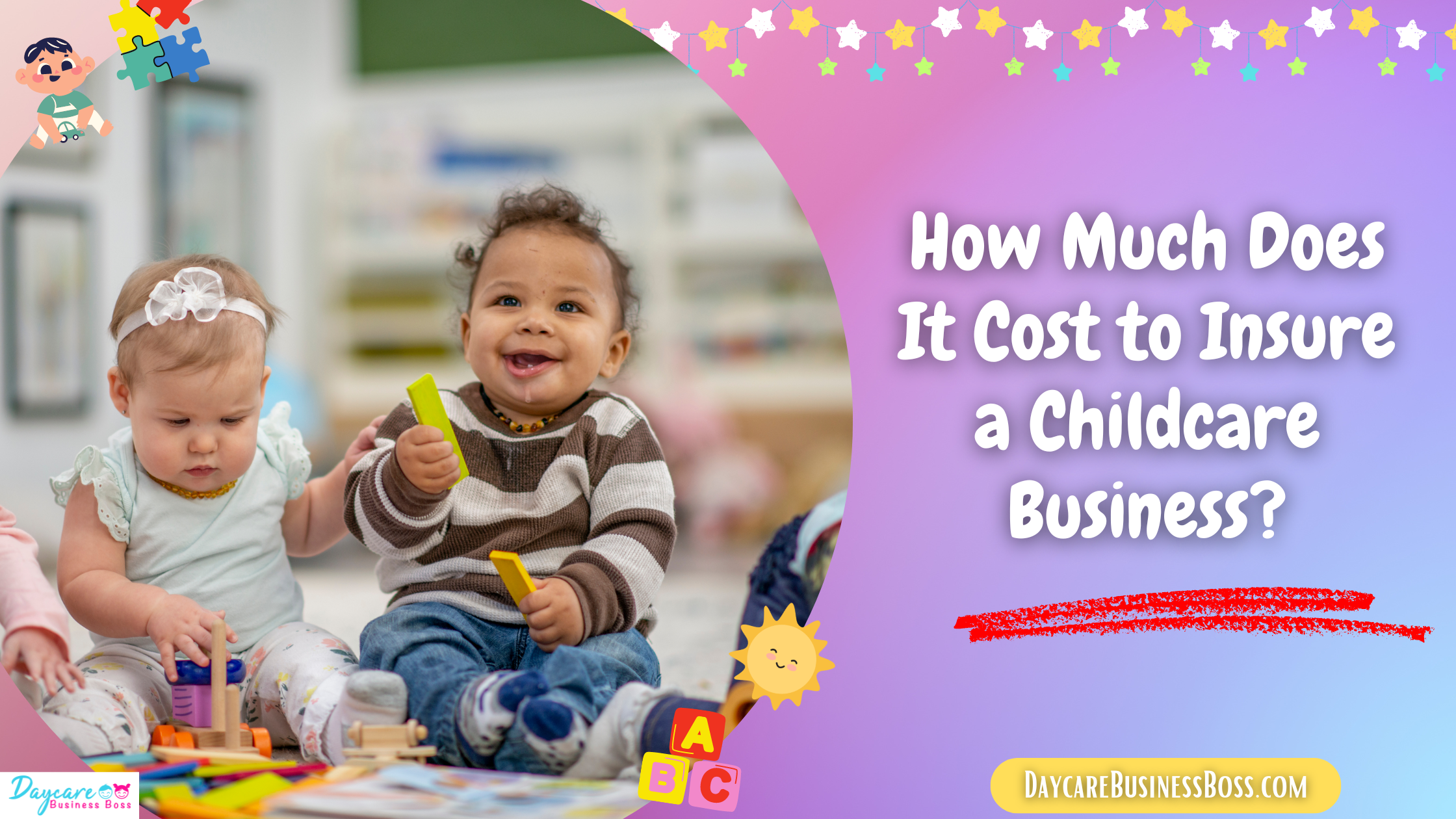 The cost to insure a childcare business is typically between $500 and $2,000 annually. There are several factors to think about to determine the types of insurance you need. The different types, how much coverage you need, and your state laws will determine the costs. Another consideration is whether you are planning to run the business out of your home or rent a commercial space.