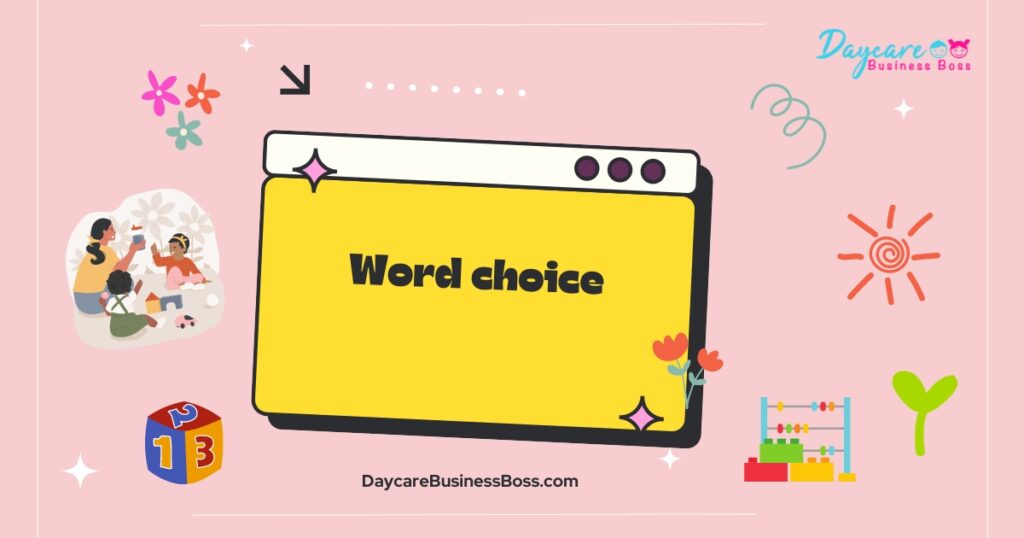 Keeping your target audience in mind is important. Obviously, daycares are for kids so your target audience is them as well as the parents. You want to come across as fun and friendly for the children but also safe and responsible for the parents. After all, they are trusting you with the most important things in their lives.